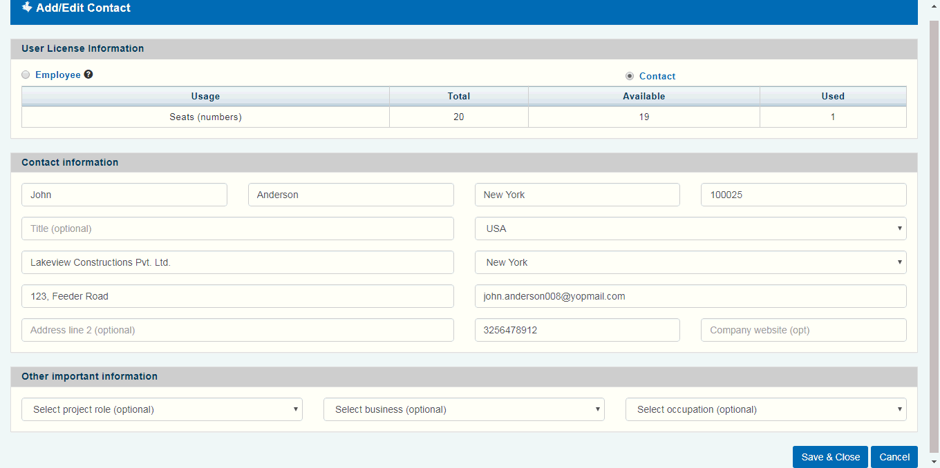 Below is displayed the Add/Edit Contact screen through which you can modify the selected Contact's information: